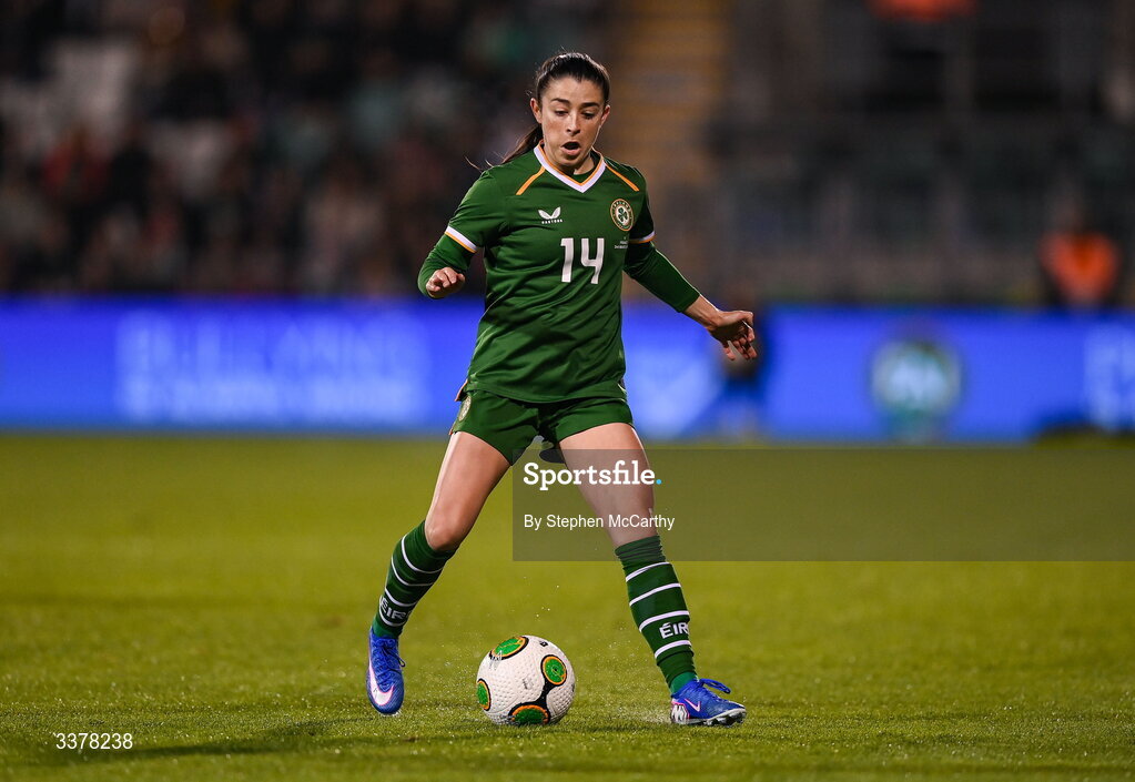 3 March 2026; Marissa Sheva of Republic of Ireland during the 2027 FIFA Women’s World Cup Qualifier match between Republic of Ireland and France at Tallaght Stadium in Dublin. Photo by Stephen McCarthy/Sportsfile