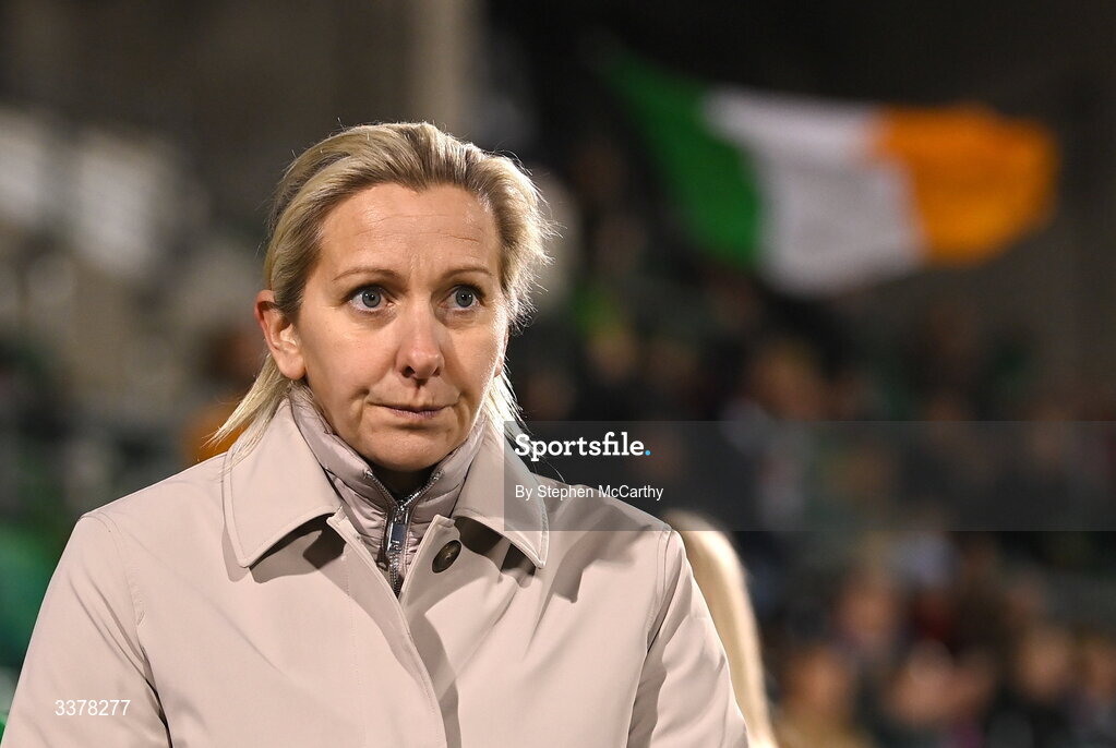 3 March 2026; Republic of Ireland head coach Carla Ward before the 2027 FIFA Women’s World Cup Qualifier match between Republic of Ireland and France at Tallaght Stadium in Dublin. Photo by Stephen McCarthy/Sportsfile