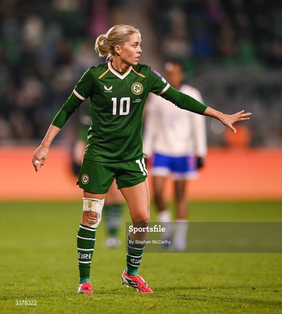 3 March 2026; Denise O’Sullivan of Republic of Ireland during the 2027 FIFA Women’s World Cup Qualifier match between Republic of Ireland and France at Tallaght Stadium in Dublin. Photo by Stephen McCarthy/Sportsfile