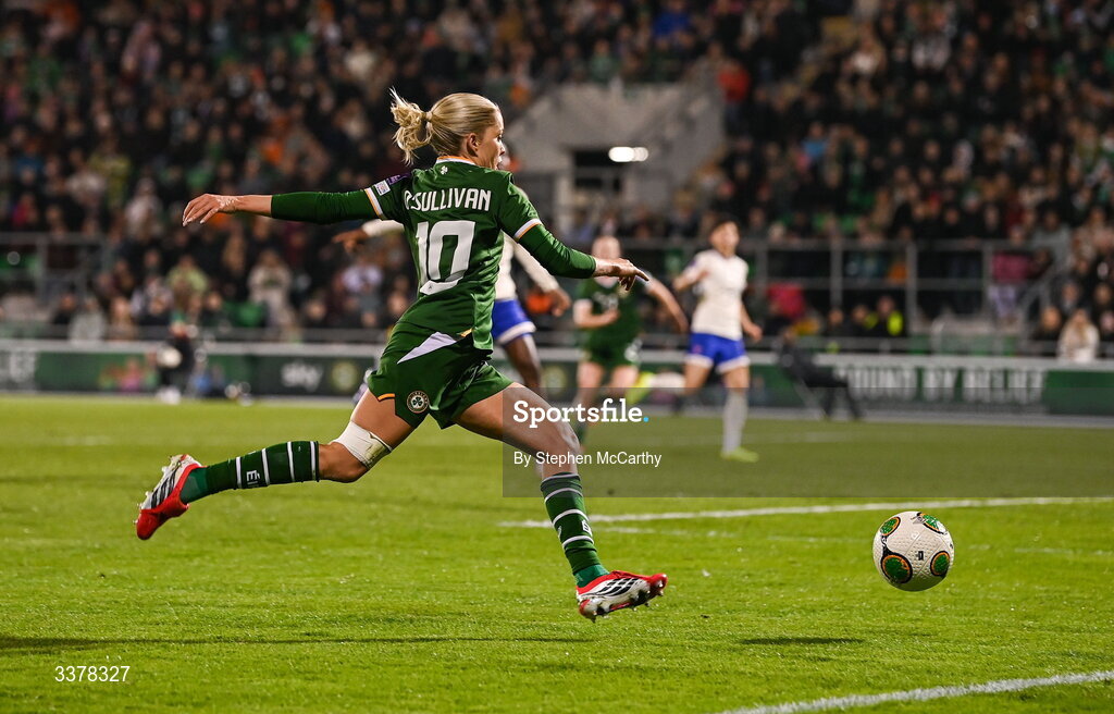 3 March 2026; Denise O’Sullivan of Republic of Ireland during the 2027 FIFA Women’s World Cup Qualifier match between Republic of Ireland and France at Tallaght Stadium in Dublin. Photo by Stephen McCarthy/Sportsfile