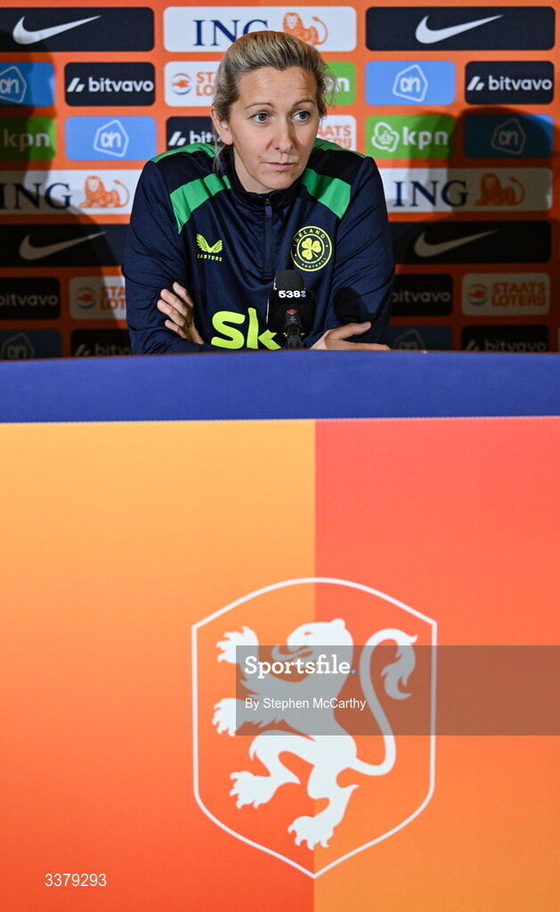 6 March 2026; Head coach Carla Ward during a Republic of Ireland women's media conference at Stadion Galgenwaard in Utrecht, Netherlands. Photo by Stephen McCarthy/Sportsfile