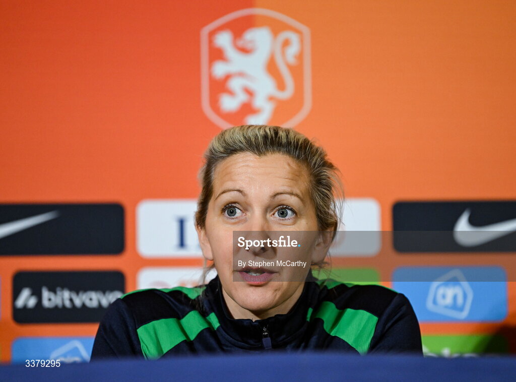 6 March 2026; Head coach Carla Ward during a Republic of Ireland women's media conference at Stadion Galgenwaard in Utrecht, Netherlands. Photo by Stephen McCarthy/Sportsfile