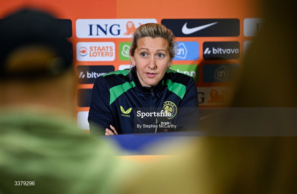 6 March 2026; Head coach Carla Ward during a Republic of Ireland women's media conference at Stadion Galgenwaard in Utrecht, Netherlands. Photo by Stephen McCarthy/Sportsfile