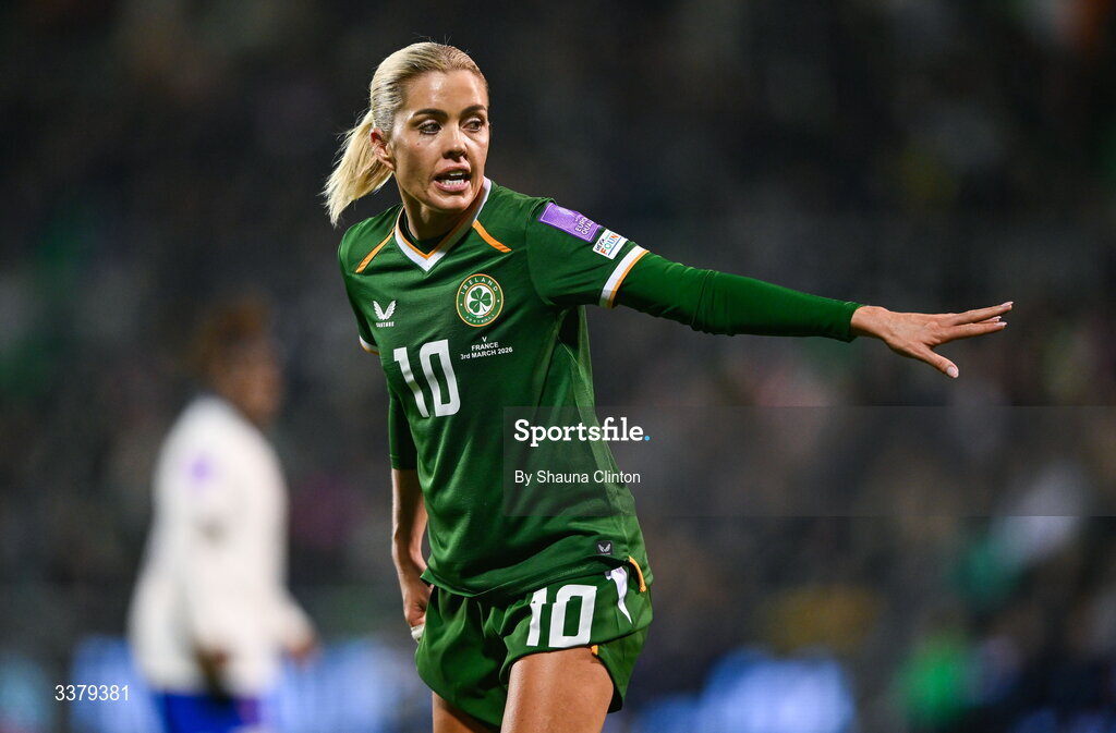 3 March 2026; Denise O'Sullivan of Republic of Ireland during the 2027 FIFA Women’s World Cup Qualifier match between Republic of Ireland and France at Tallaght Stadium in Dublin. Photo by Shauna Clinton/Sportsfile