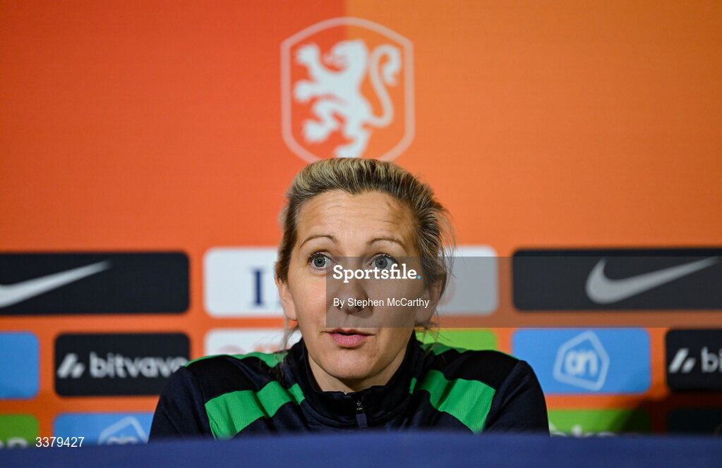 6 March 2026; Head coach Carla Ward during a Republic of Ireland women's media conference at Stadion Galgenwaard in Utrecht, Netherlands. Photo by Stephen McCarthy/Sportsfile