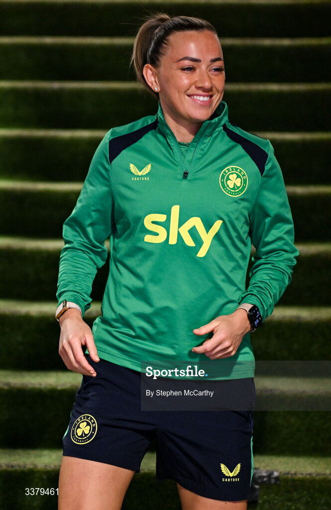 6 March 2026; Katie McCabe during a Republic of Ireland women's training session at Stadion Galgenwaard in Utrecht, Netherlands. Photo by Stephen McCarthy/Sportsfile