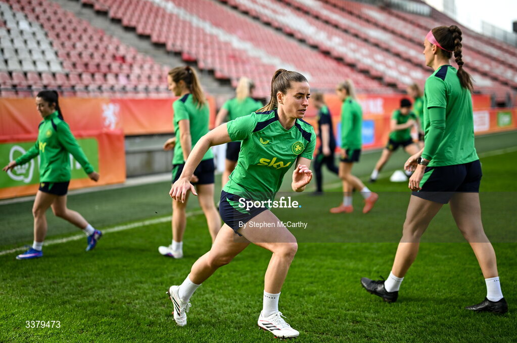 6 March 2026; Chloe Mustaki during a Republic of Ireland women's training session at Stadion Galgenwaard in Utrecht, Netherlands. Photo by Stephen McCarthy/Sportsfile