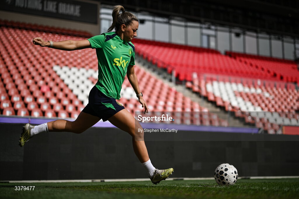 6 March 2026; Katie McCabe during a Republic of Ireland women's training session at Stadion Galgenwaard in Utrecht, Netherlands. Photo by Stephen McCarthy/Sportsfile