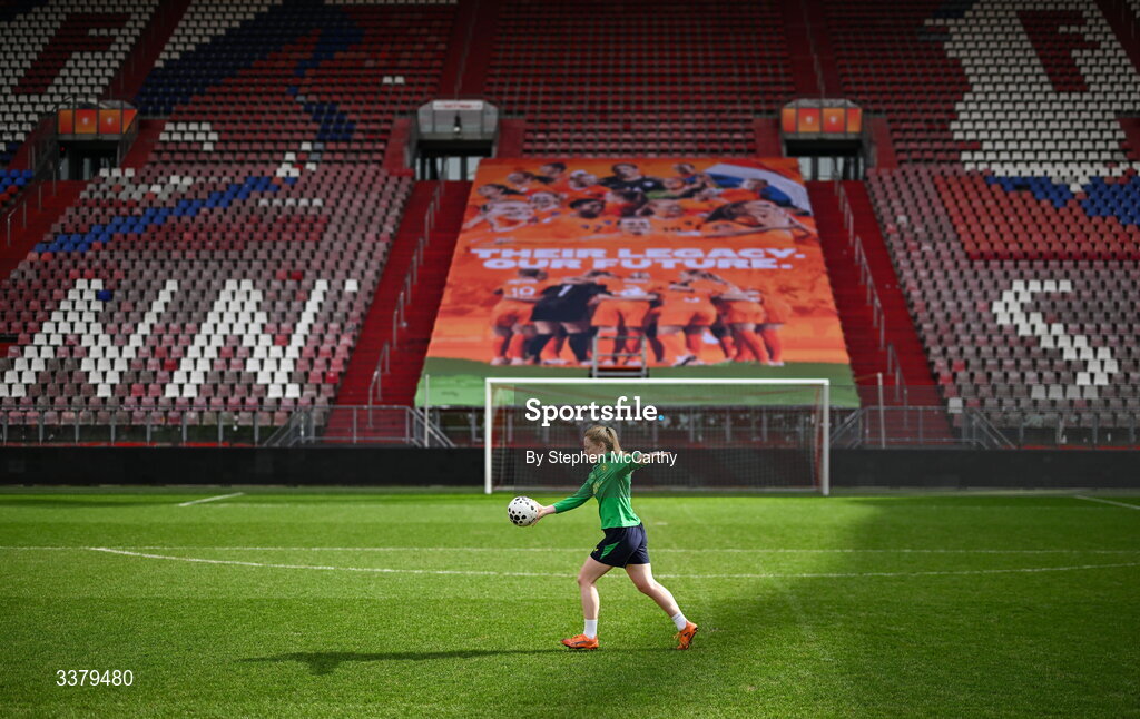 6 March 2026; Amber Barrett during a Republic of Ireland women's training session at Stadion Galgenwaard in Utrecht, Netherlands. Photo by Stephen McCarthy/Sportsfile