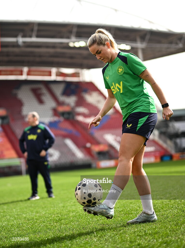 6 March 2026; Jessie Stapleton during a Republic of Ireland women's training session at Stadion Galgenwaard in Utrecht, Netherlands. Photo by Stephen McCarthy/Sportsfile