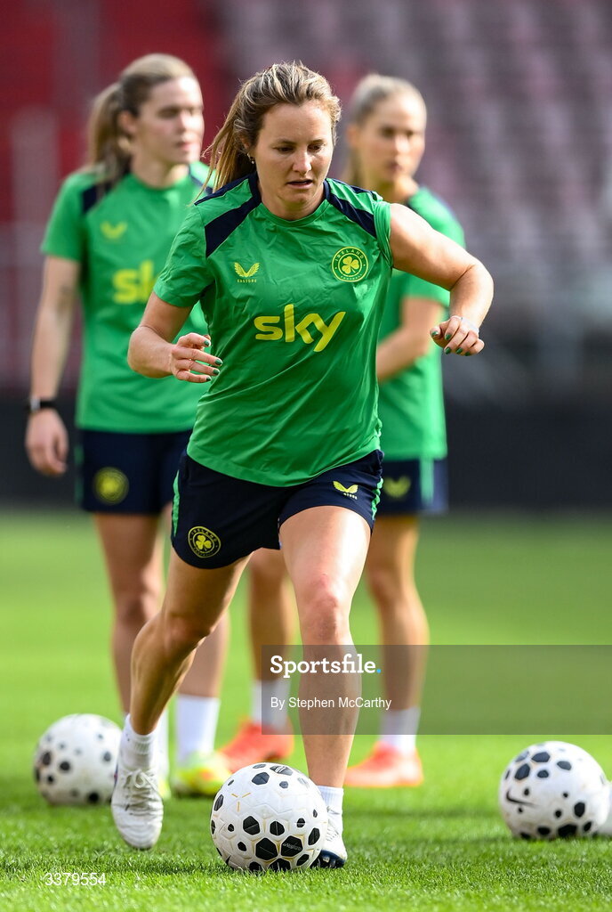 6 March 2026; Kyra Carusa during a Republic of Ireland women's training session at Stadion Galgenwaard in Utrecht, Netherlands. Photo by Stephen McCarthy/Sportsfile