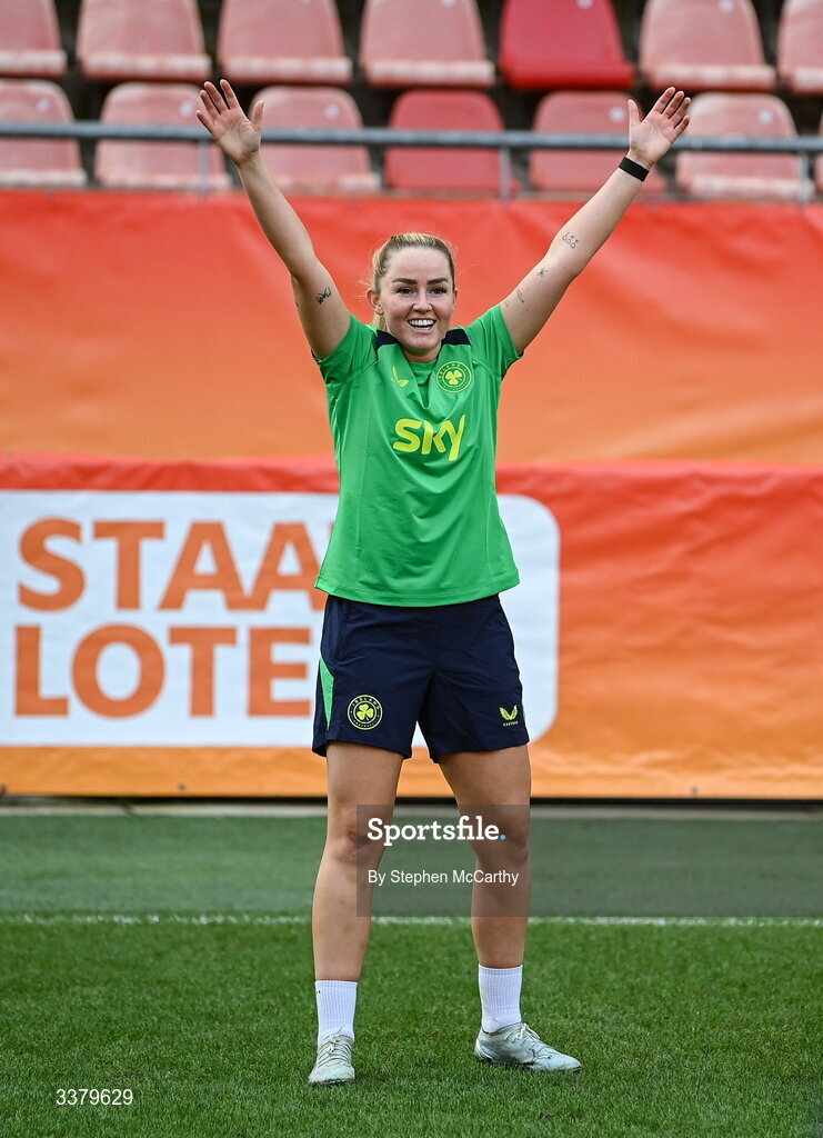 6 March 2026; Jessie Stapleton during a Republic of Ireland women's training session at Stadion Galgenwaard in Utrecht, Netherlands. Photo by Stephen McCarthy/Sportsfile