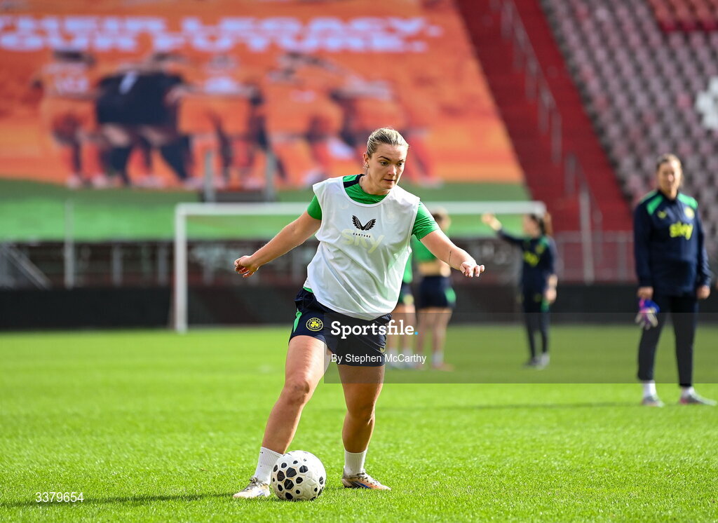 6 March 2026; Saoirse Noonan during a Republic of Ireland women's training session at Stadion Galgenwaard in Utrecht, Netherlands. Photo by Stephen McCarthy/Sportsfile