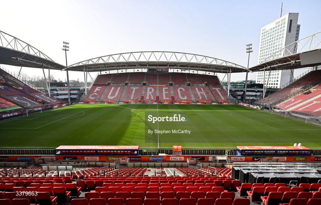 6 March 2026; A general view inside the stadium before a Republic of Ireland women's training session at Stadion Galgenwaard in Utrecht, Netherlands. Photo by Stephen McCarthy/Sportsfile