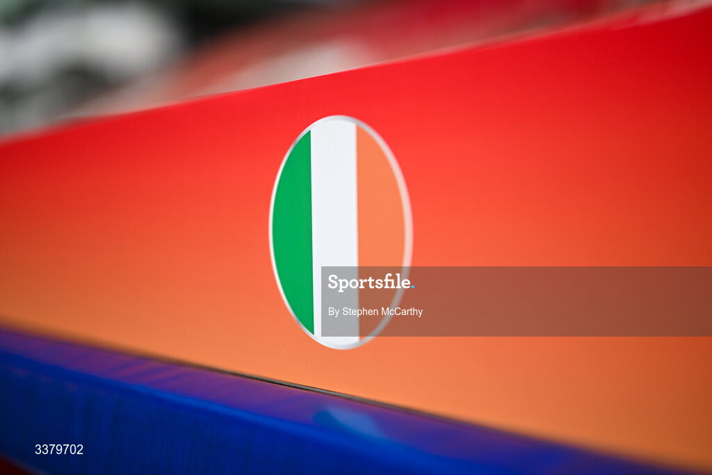 6 March 2026; The Republic of Ireland flag on their bench inside the stadium during a Republic of Ireland women's training session at Stadion Galgenwaard in Utrecht, Netherlands. Photo by Stephen McCarthy/Sportsfile