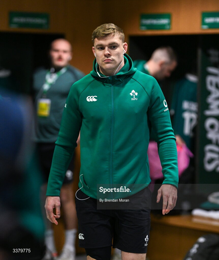 6 March 2026; Garry Ringrose of Ireland in the dressing-room before the Guinness 6 Nations Rugby Championship match between Ireland and Wales at the Aviva Stadium in Dublin. Photo by Brendan Moran/Sportsfile