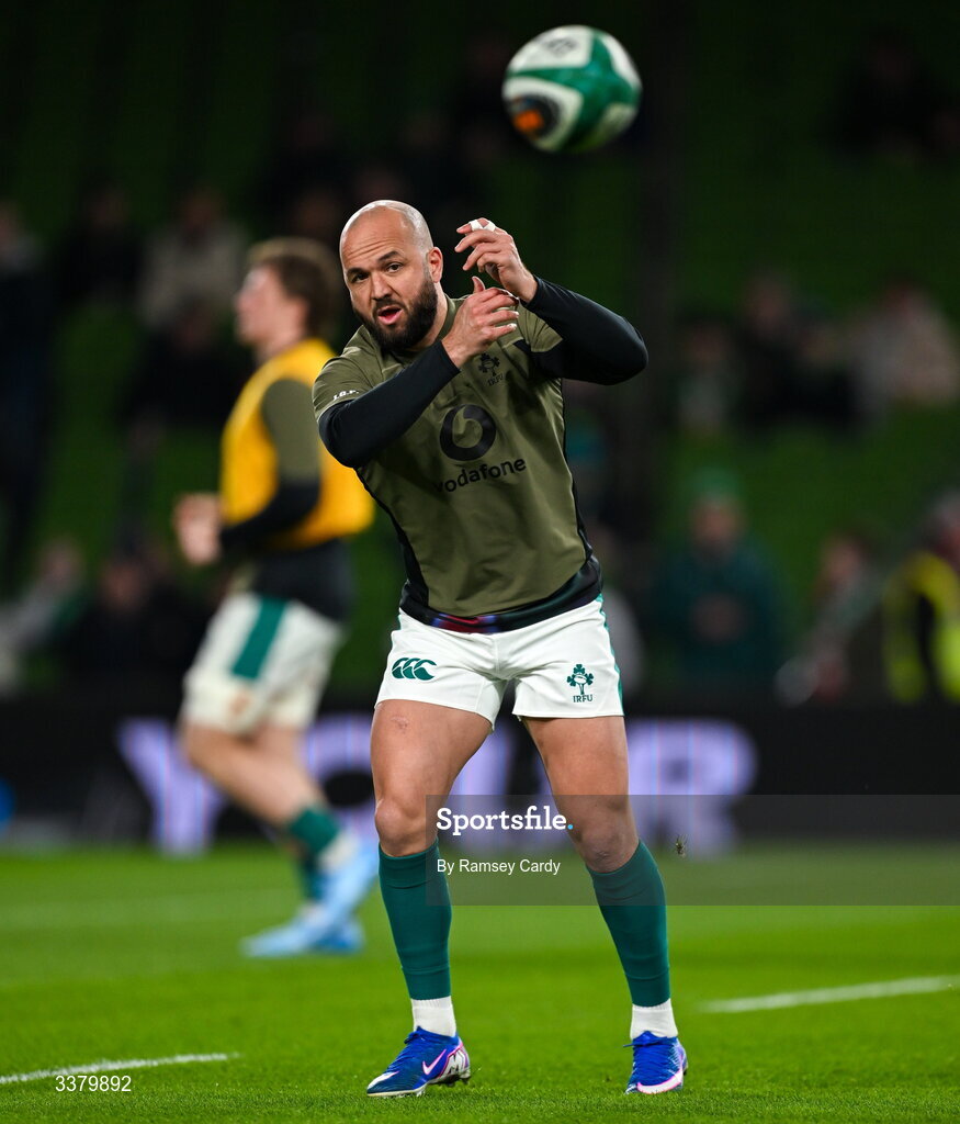 6 March 2026; Jamison Gibson-Park of Ireland warms-up before the Guinness 6 Nations Rugby Championship match between Ireland and Wales at the Aviva Stadium in Dublin. Photo by Ramsey Cardy/Sportsfile