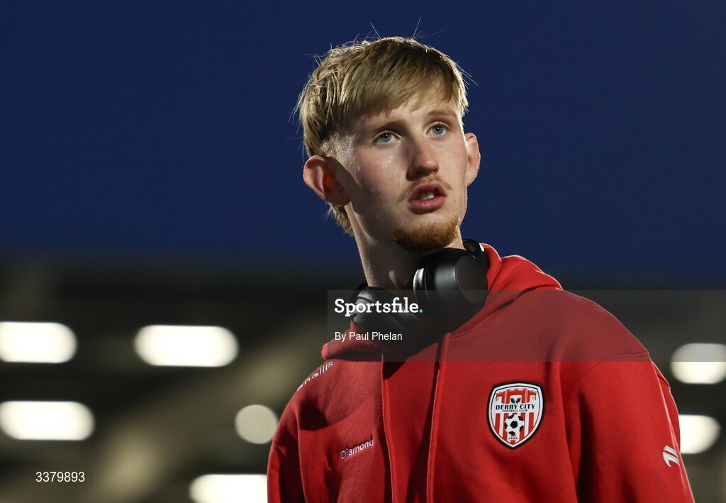 6 March 2026; Derry City goalkeeper Shea Callister arrives before the SSE Airtricity Men's Premier Division match between Shamrock Rovers and Derry City at Tallaght Stadium in Dublin. Photo by Paul Phelan/Sportsfile