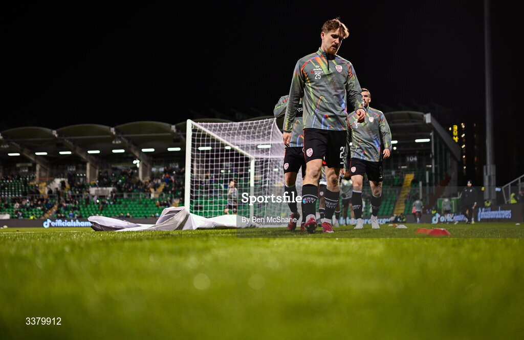 6 March 2026; Alex Bannon of Derry City before the SSE Airtricity Men's Premier Division match between Shamrock Rovers and Derry City at Tallaght Stadium in Dublin. Photo by Ben McShane/Sportsfile