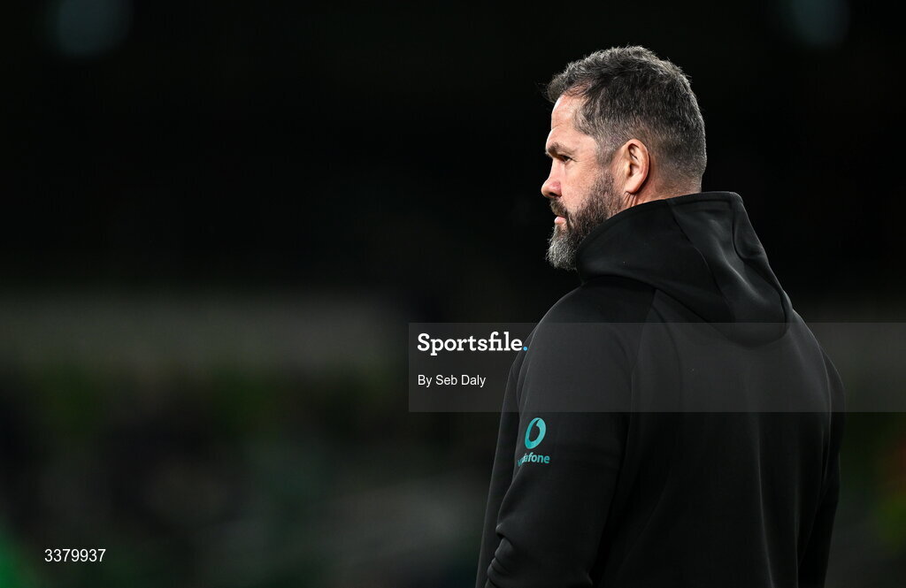 6 March 2026; Ireland head coach Andy Farrell before the Guinness 6 Nations Rugby Championship match between Ireland and Wales at the Aviva Stadium in Dublin. Photo by Seb Daly/Sportsfile