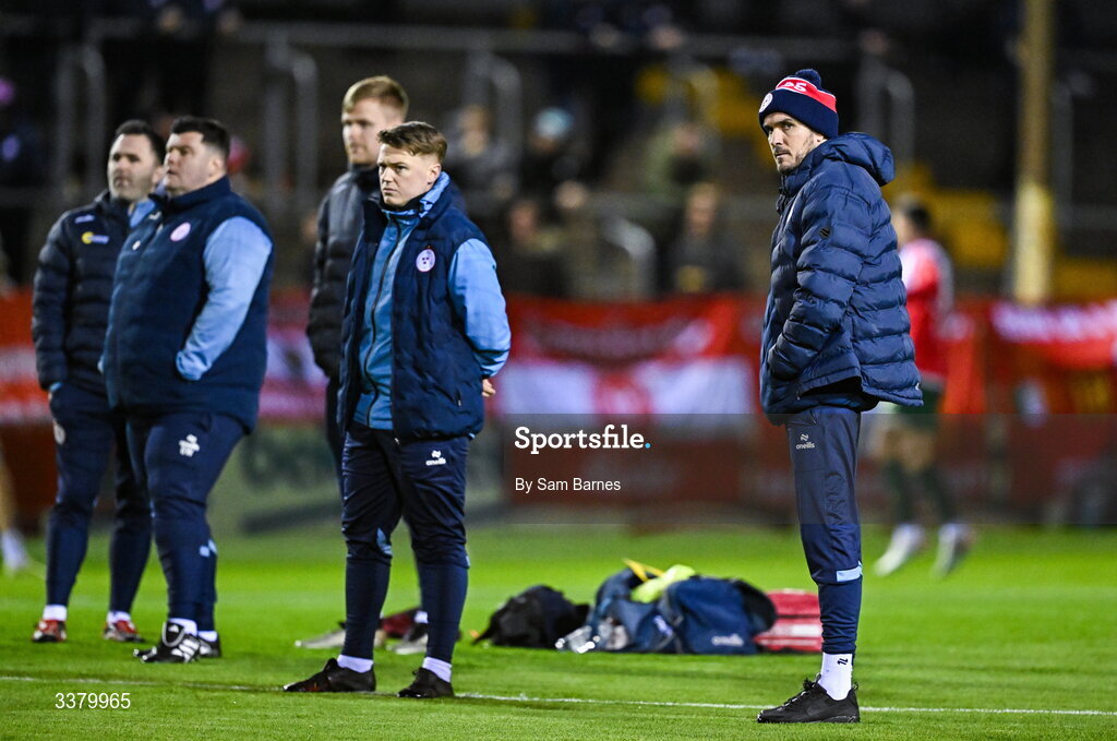 6 March 2026; Shelbourne head coach Joey O'Brien, right, before the SSE Airtricity Men's Premier Division match between Shelbourne and St Patrick's Athletic at Tolka Park in Dublin. Photo by Sam Barnes/Sportsfile