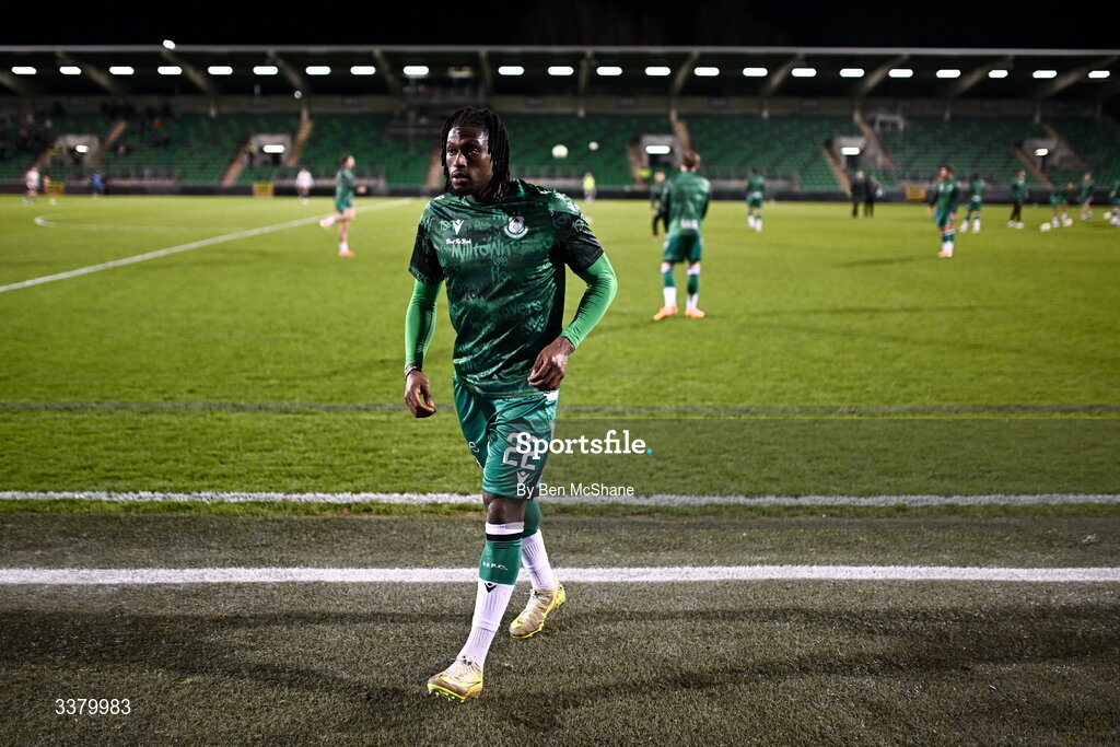6 March 2026; Tunmise Sobowale of Shamrock Rovers before the SSE Airtricity Men's Premier Division match between Shamrock Rovers and Derry City at Tallaght Stadium in Dublin. Photo by Ben McShane/Sportsfile
