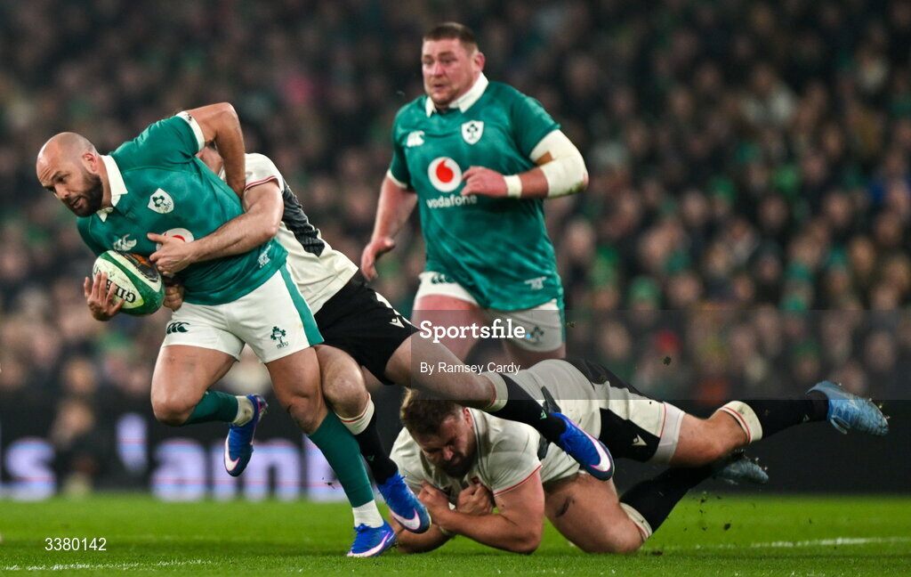 6 March 2026; Jamison Gibson-Park of Ireland is tackled by Tomos Williams of Wales during the Guinness 6 Nations Rugby Championship match between Ireland and Wales at the Aviva Stadium in Dublin. Photo by Ramsey Cardy/Sportsfile