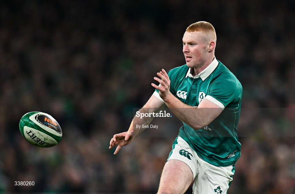6 March 2026; Nathan Doak of Ireland during the Guinness 6 Nations Rugby Championship match between Ireland and Wales at the Aviva Stadium in Dublin. Photo by Seb Daly/Sportsfile