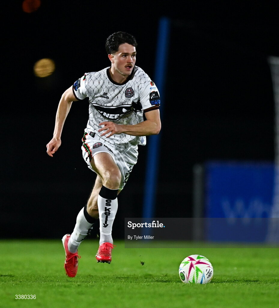 6 March 2026; Patrick Hickey of Bohemians during the SSE Airtricity Men's Premier Division match between Waterford and Bohemians at the RSC in Waterford. Photo by Tyler Miller/Sportsfile