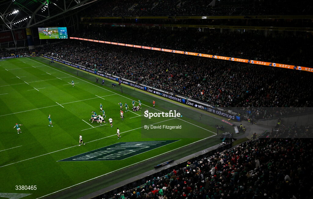 6 March 2026; A general view of action during the Guinness 6 Nations Rugby Championship match between Ireland and Wales at the Aviva Stadium in Dublin. Photo by David Fitzgerald/Sportsfile