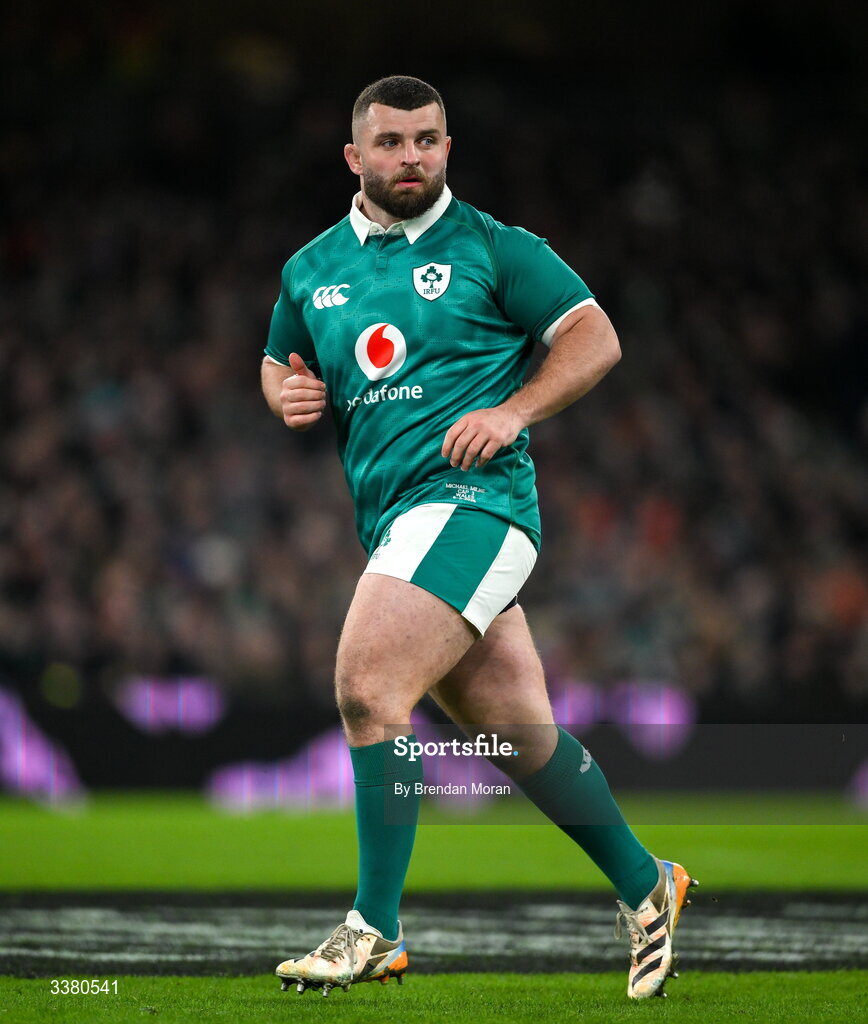 6 March 2026; Michael Milne of Ireland during the Guinness 6 Nations Rugby Championship match between Ireland and Wales at the Aviva Stadium in Dublin. Photo by Brendan Moran/Sportsfile
