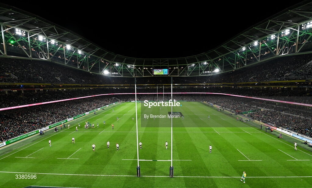 6 March 2026; A general view during the Guinness 6 Nations Rugby Championship match between Ireland and Wales at the Aviva Stadium in Dublin.Amhrán na bhFiann Photo by Brendan Moran/Sportsfile