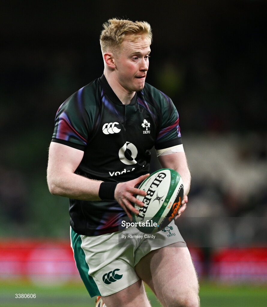 6 March 2026; Jamie Osborne of Ireland before the Guinness 6 Nations Rugby Championship match between Ireland and Wales at the Aviva Stadium in Dublin. Photo by Ramsey Cardy/Sportsfile