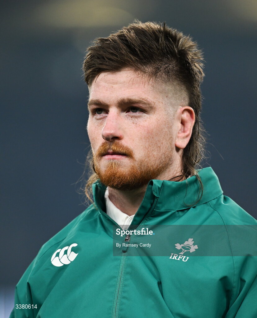 6 March 2026; Joe McCarthy of Ireland before the Guinness 6 Nations Rugby Championship match between Ireland and Wales at the Aviva Stadium in Dublin. Photo by Ramsey Cardy/Sportsfile