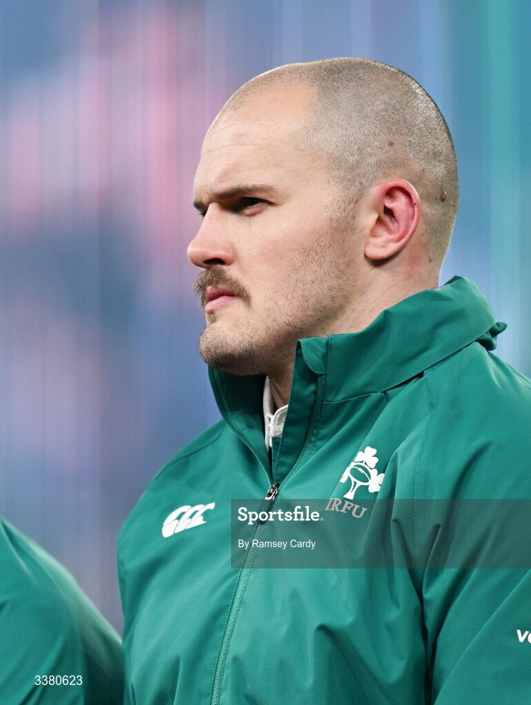 6 March 2026; Jacob Stockdale of Ireland before the Guinness 6 Nations Rugby Championship match between Ireland and Wales at the Aviva Stadium in Dublin. Photo by Ramsey Cardy/Sportsfile