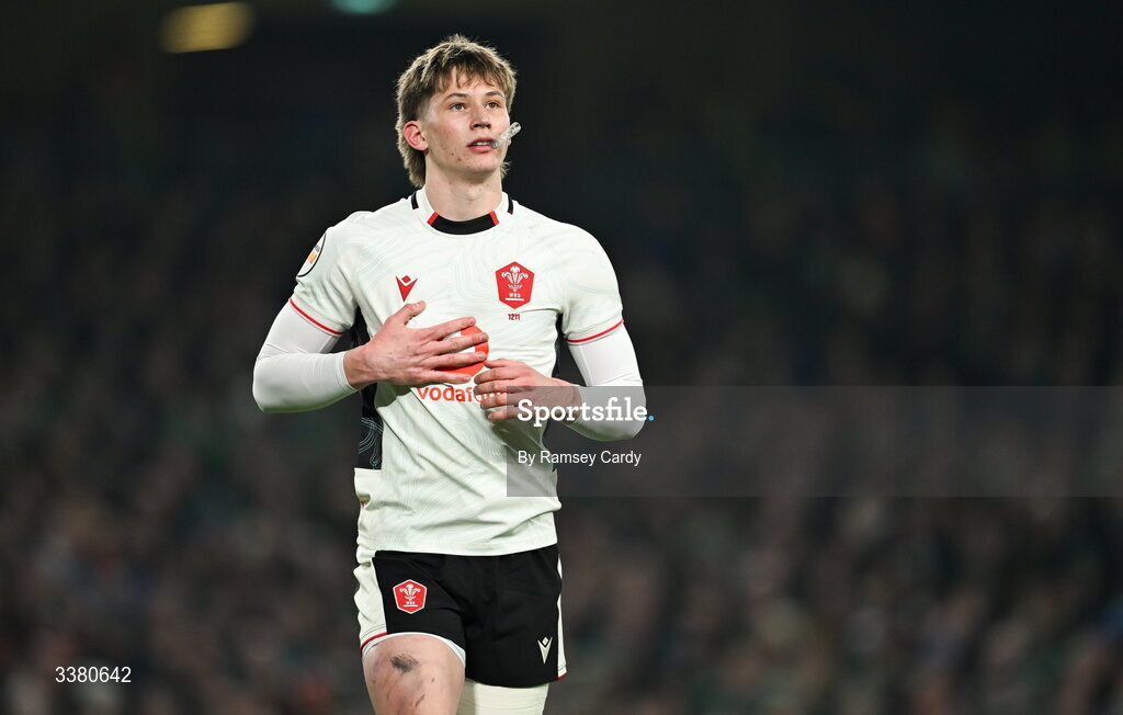 6 March 2026; Ellis Mee of Wales during the Guinness 6 Nations Rugby Championship match between Ireland and Wales at the Aviva Stadium in Dublin. Photo by Ramsey Cardy/Sportsfile