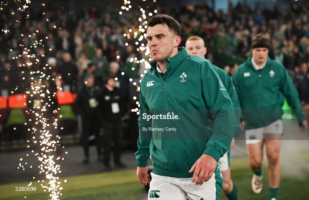 6 March 2026; Tom Farrell of Ireland before the Guinness 6 Nations Rugby Championship match between Ireland and Wales at the Aviva Stadium in Dublin. Photo by Ramsey Cardy/Sportsfile
