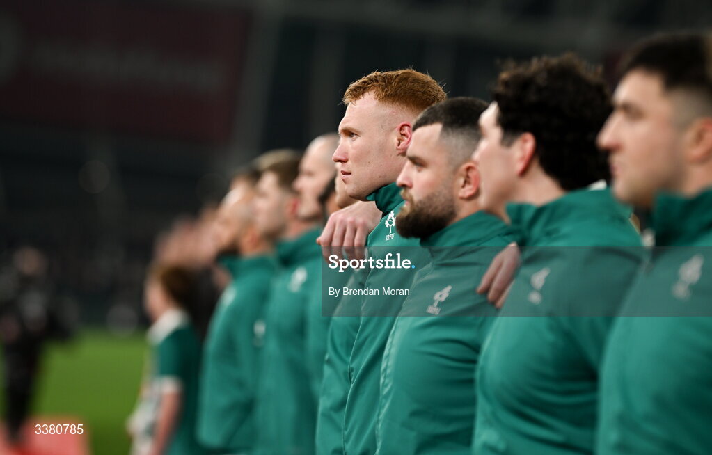 6 March 2026; Ciarán Frawley of Ireland before the Guinness 6 Nations Rugby Championship match between Ireland and Wales at the Aviva Stadium in Dublin. Photo by Brendan Moran/Sportsfile