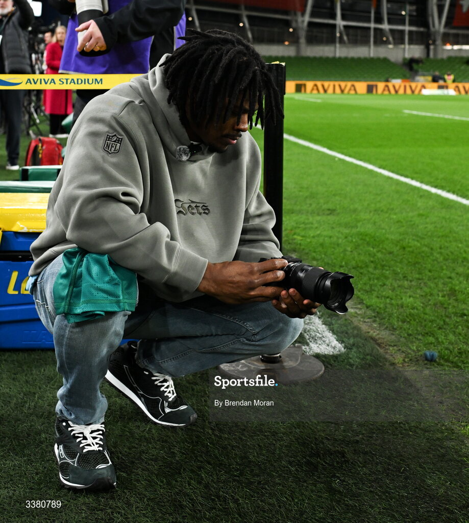 6 March 2026; New York Jets NFL player Marcelino McCrary-Ball in attendance during the Guinness 6 Nations Rugby Championship match between Ireland and Wales at the Aviva Stadium in Dublin. Photo by Brendan Moran/Sportsfile