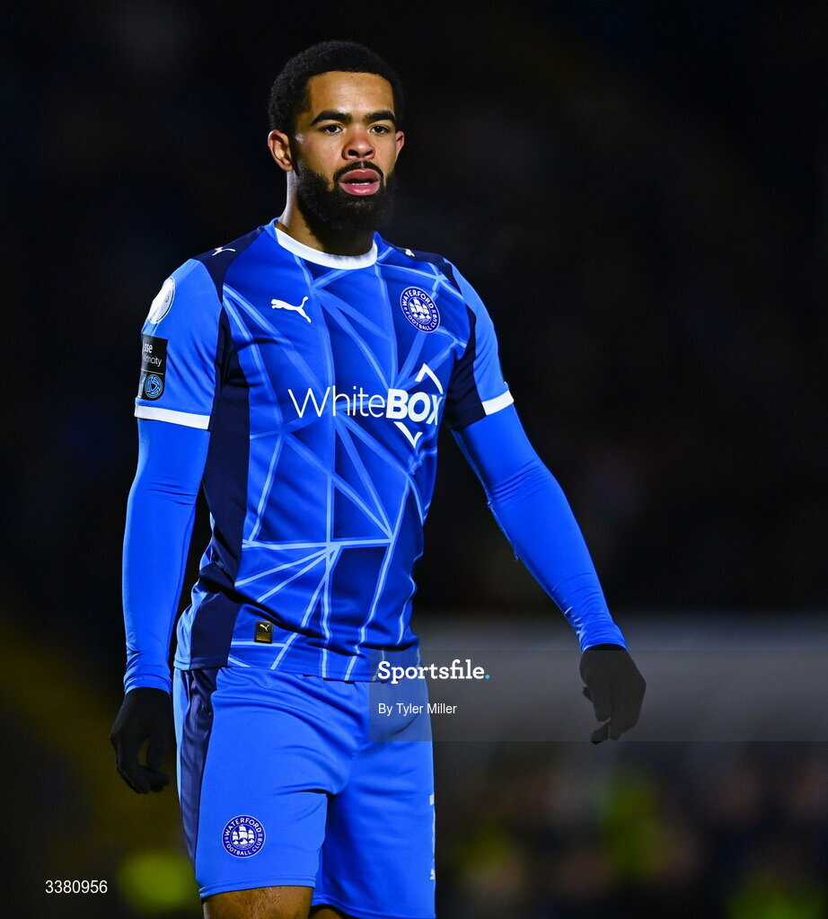 6 March 2026; Trae Coyle of Waterford during the SSE Airtricity Men's Premier Division match between Waterford and Bohemians at the RSC in Waterford. Photo by Tyler Miller/Sportsfile