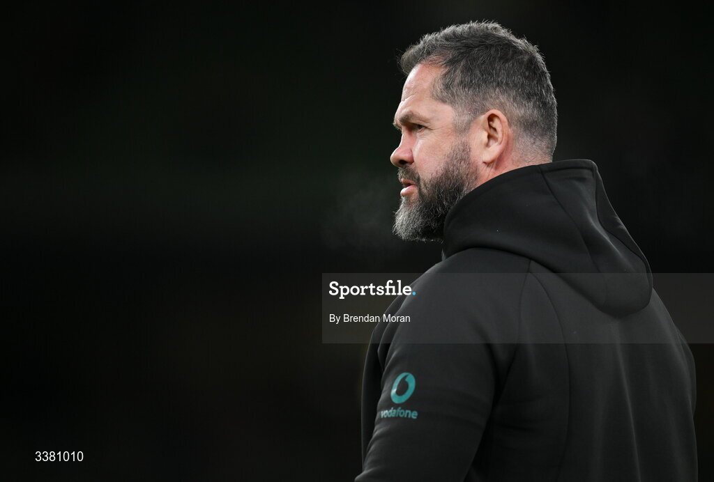 6 March 2026; Ireland head coach Andy Farrell before the Guinness 6 Nations Rugby Championship match between Ireland and Wales at the Aviva Stadium in Dublin. Photo by Brendan Moran/Sportsfile