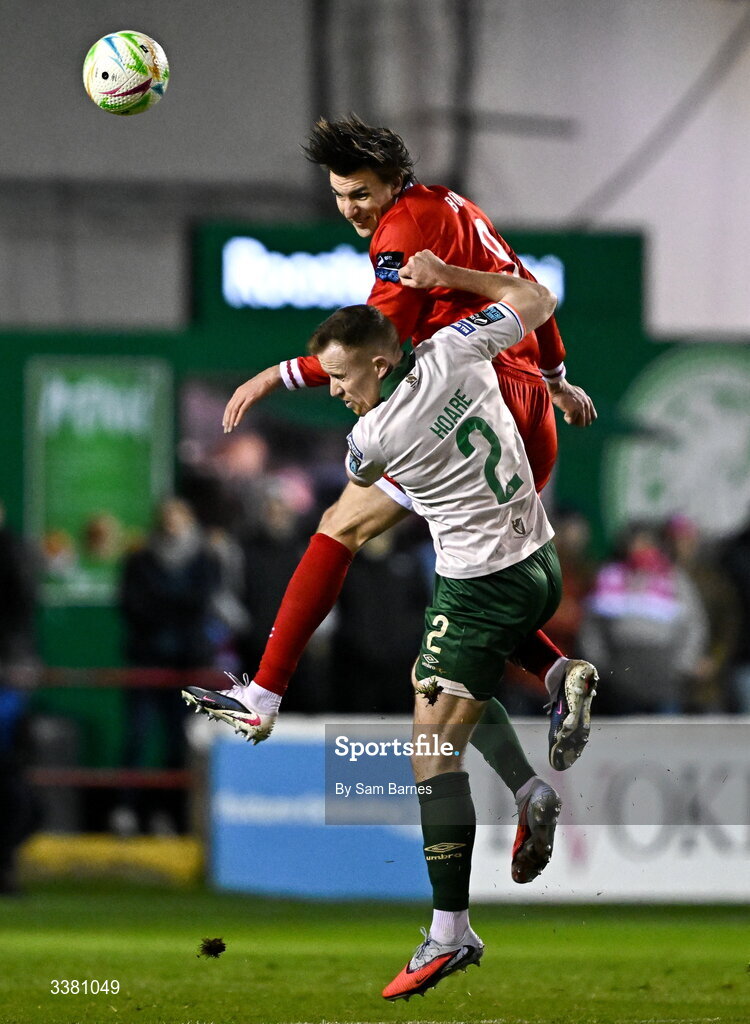 6 March 2026; Sean Boyd of Shelbourne in action against Sean Hoare of St Patrick's Athletic during the SSE Airtricity Men's Premier Division match between Shelbourne and St Patrick's Athletic at Tolka Park in Dublin. Photo by Sam Barnes/Sportsfile