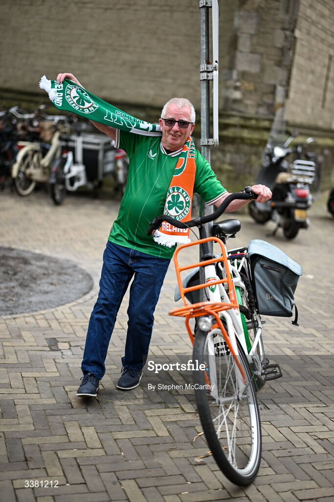 7 March 2026; Republic of Ireland supporter Robert Larkin in Utrecht ahead of their side's 2027 FIFA Women’s World Cup Qualifier match against Netherlands at Stadion Galgenwaard in Utrecht, Netherlands. Photo by Stephen McCarthy/Sportsfile