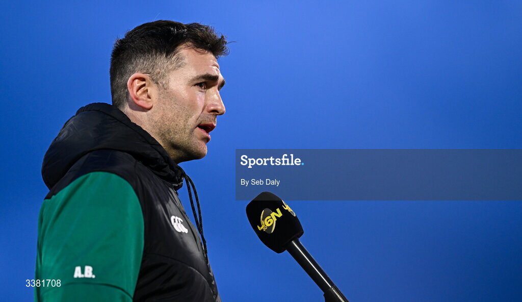 7 March 2026; Ireland head coach Andrew Browne before the U20 Six Nations Rugby Championship match between Ireland and Wales at Virgin Media Park in Cork. Photo by Seb Daly/Sportsfile
