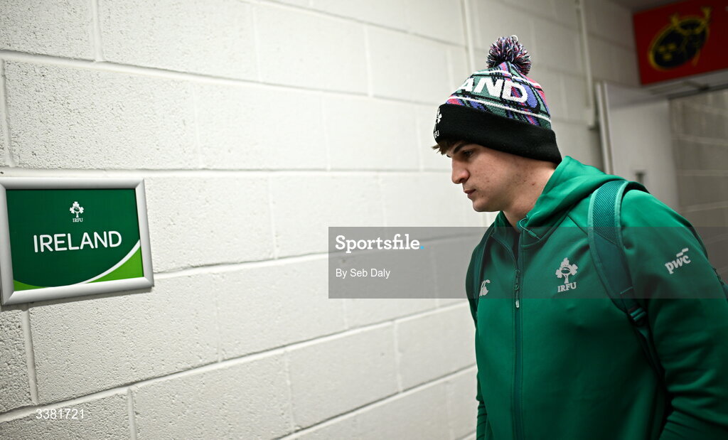 7 March 2026; Josh Neill of Ireland before the U20 Six Nations Rugby Championship match between Ireland and Wales at Virgin Media Park in Cork. Photo by Seb Daly/Sportsfile