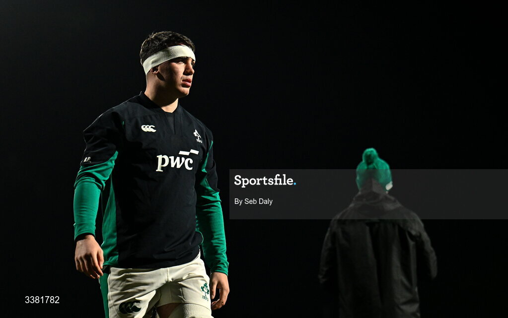 7 March 2026; Ben Blaney of Ireland before the U20 Six Nations Rugby Championship match between Ireland and Wales at Virgin Media Park in Cork. Photo by Seb Daly/Sportsfile