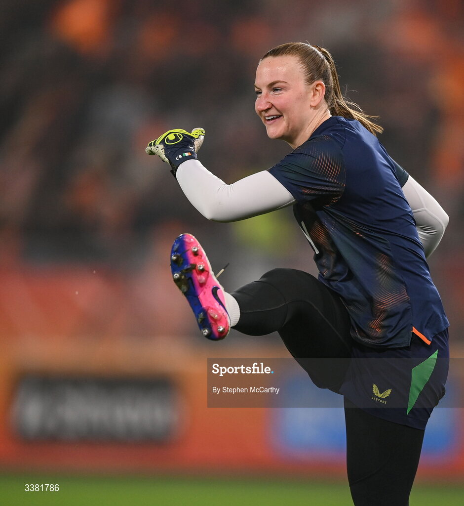 7 March 2026; Republic of Ireland goalkeeper Courtney Brosnan before the 2027 FIFA Women’s World Cup Qualifier match between the Netherlands and Republic of Ireland at Stadion Galgenwaard in Utrecht, Netherlands. Photo by Stephen McCarthy/Sportsfile