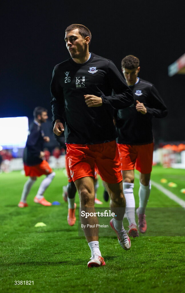 7 March 2026; Michael Cardo of Drogheda before the SSE Airtricity Men's Premier Division match between Sligo Rovers and Drogheda United at The Showgrounds in Sligo. Photo by Paul Phelan/Sportsfile