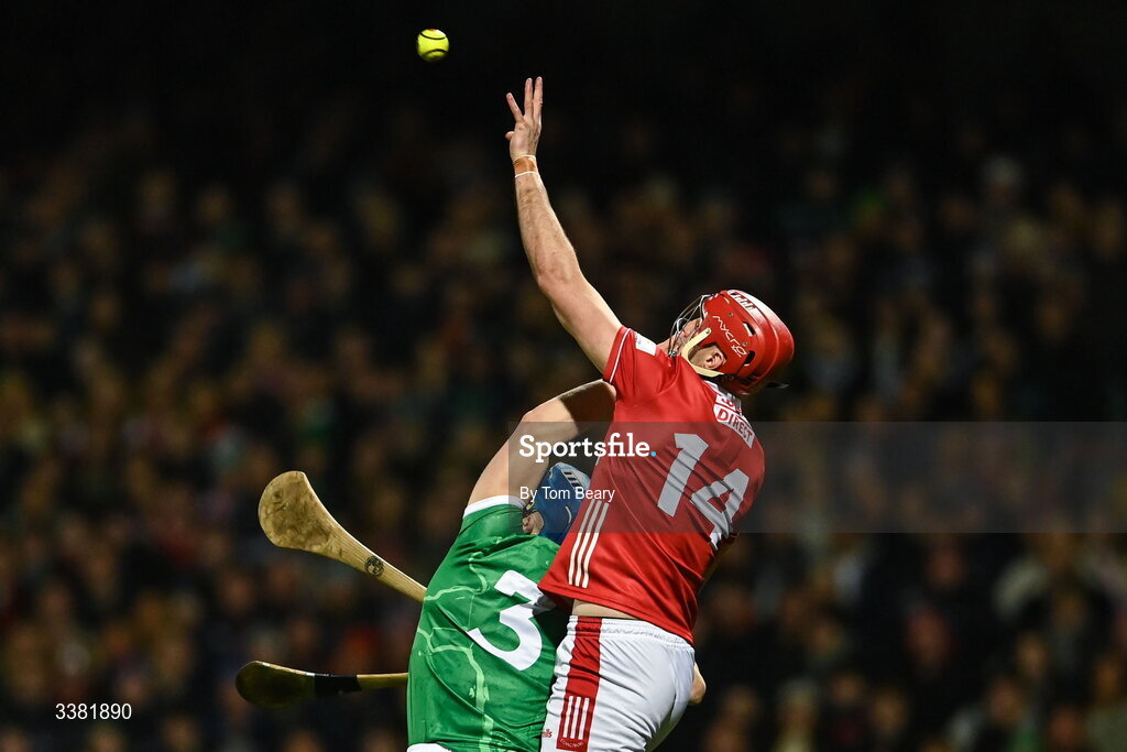 7 March 2026; Brian Hayes of Cork in action against Mike Casey of Limerick during the Allianz Hurling League Division 1A match between Limerick and Cork at TUS Gaelic Grounds in Limerick. Photo by Tom Beary/Sportsfile