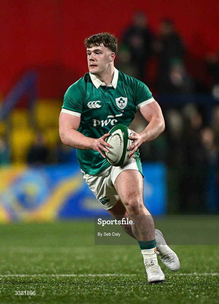 7 March 2026; James O'Leary of Ireland during the U20 Six Nations Rugby Championship match between Ireland and Wales at Virgin Media Park in Cork. Photo by Seb Daly/Sportsfile